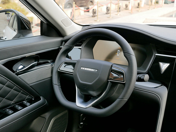 在內(nèi)飾設(shè)計(jì)上,啟辰星打破了此前啟辰車型的設(shè)計(jì)樣式,有較大突破。其中內(nèi)飾整體以“頭等艙”作為設(shè)計(jì)理念,中控臺(tái)采用環(huán)抱式結(jié)構(gòu),并大量采用軟質(zhì)材料包裹。T型臺(tái)設(shè)計(jì)簡(jiǎn)潔,取消了大部分物理按鍵。其一鍵啟動(dòng)按鍵以V形布置,懸浮式中控臺(tái)計(jì)融合檔把、組合按鍵、無線充電模塊。