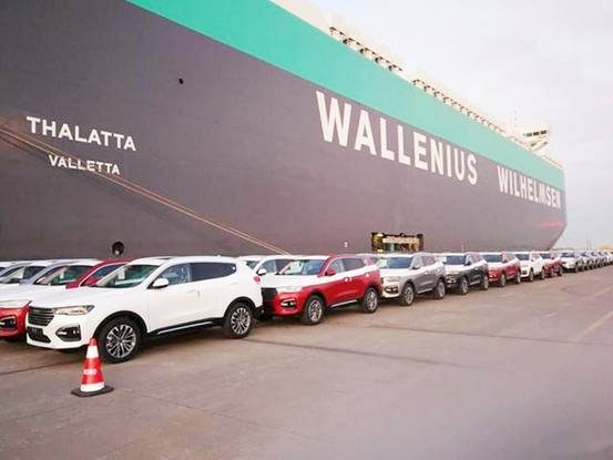 等待裝船出口的國(guó)產(chǎn)汽車(chē)