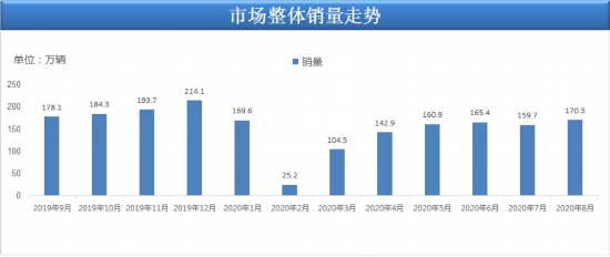 從整體市場(chǎng)銷(xiāo)量情況來(lái)看,8月乘用車(chē)市場(chǎng)零售銷(xiāo)量為170.3萬(wàn)輛,同比增長(zhǎng)8.9%,實(shí)現(xiàn)自2018年5月以來(lái)的最強(qiáng)正增長(zhǎng)。根據(jù)統(tǒng)計(jì),今年1-8月的零售累計(jì)增速-15.2%,較1-7月累計(jì)增速提升了3.3個(gè)百分點(diǎn),體現(xiàn)行業(yè)的快速回暖態(tài)勢(shì)。