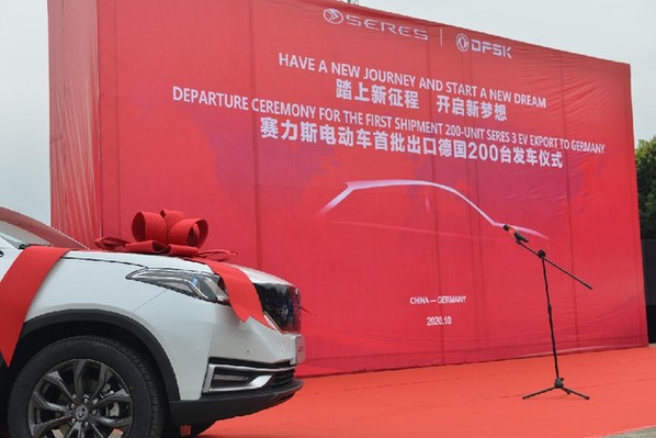 10月8日,“賽力斯電動車首批出口德國200臺發(fā)車儀式”在重慶國際物流樞紐園區(qū)舉行。小康集團(tuán)旗下賽力斯品牌智能電動汽車——賽力斯3將通過海運(yùn)于一個月后抵達(dá)德國市場。