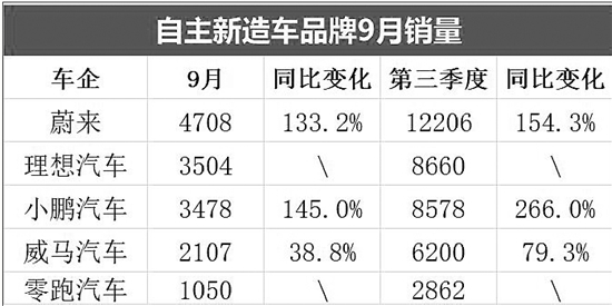 無(wú)論口水怎么戰(zhàn),銷量是檢驗(yàn)口舌的最好工具。今年9月,造車新勢(shì)力們的表現(xiàn)令人刮目相看。9月造車新勢(shì)力總計(jì)銷量超過(guò)14000輛,相比8月份漲了一倍還多,9月銷量可以用“暴增”來(lái)形容也一點(diǎn)不為過(guò)。蔚來(lái)暫處桿位,9月銷量為4708輛,第三季度共實(shí)現(xiàn)銷量12206輛,成為造車新勢(shì)力今年以來(lái)首個(gè)銷量破萬(wàn)車企。
