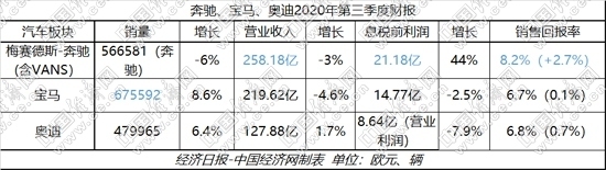 在此帶動下,BBA汽車業(yè)務(wù)一改二季度的虧損、下滑,三季度各主要財務(wù)指標(biāo)均呈現(xiàn)明顯回升,息稅前利潤及銷售回報率等更是實現(xiàn)由虧損轉(zhuǎn)向盈利,寶馬、奧迪在銷量上也分別達到8.6%和6.4%的同比正增長。BBA前三季度各指標(biāo),也因此實現(xiàn)了一定程度的提升。