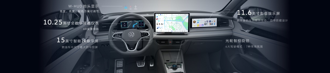 基于“好用”和“想用”的理念,全新探岳L 智能座艙以5+X多屏多模交互系統(tǒng)為核心。其中,“5”即5塊屏幕,包含了15英寸2K中控屏、11.6英寸副駕影音娛樂(lè)屏,搭配豐富的車(chē)內(nèi)娛樂(lè)生態(tài),靈動(dòng)又默契;另外,10.25英寸全數(shù)字液晶儀表,能實(shí)現(xiàn)AR實(shí)景導(dǎo)航,導(dǎo)航信息與實(shí)景路面融合,讓駕駛更加專(zhuān)注;抬頭顯示HUD,安全好用;可觸摸光輪智控旋鈕,調(diào)節(jié)音量和切換駕駛模式,更加便捷。