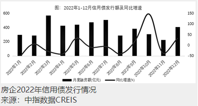 中指研究院近日公布的數(shù)據(jù)顯示,2022年12月,民營房企發(fā)債規(guī)模達(dá)到96.3億元,占全年民營房企信用債發(fā)行量的35.5%,發(fā)行主體也從頭部優(yōu)質(zhì)民企擴(kuò)展到中小型民企。從房企全年單月融資情況來看,3月為年度融資高峰,總量超過千億規(guī)模。下半年,8月、11月均有融資利好政策釋放且快速落地,因此隨后房企融資額小幅回升。其中,優(yōu)質(zhì)民營房企信用債發(fā)行在9月、12月分別出現(xiàn)兩個(gè)小高峰。特別是融資利率方面,受2022年內(nèi)多次降息、信貸環(huán)境相對寬松、信托融資規(guī)模下降等多重因素影響,房地產(chǎn)行業(yè)平均融資成本明顯下降。
