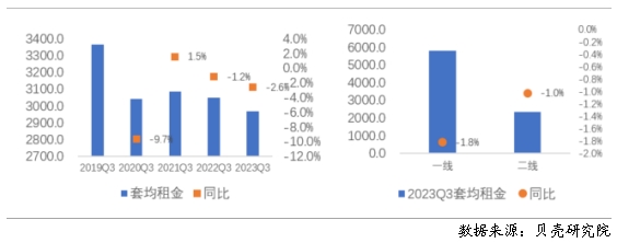 一、2023年三季度住房租金變動情況