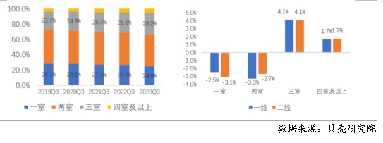 大戶型占比增加趨勢顯著,三居室成交占比首次超過一居室