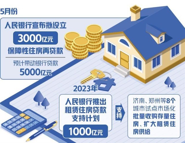 5月,人民銀行宣布擬設(shè)立3000億元保障性住房再貸款,按照“政府主導(dǎo)、市場化運作”的思路,由中國人民銀行提供低成本再貸款資金,激勵21家全國性銀行機構(gòu)按照市場化、法治化原則,支持地方國有企業(yè)以合理價格收購已建成存量商品房,用作配售型或配租型保障性住房,預(yù)計帶動銀行貸款5000億元。