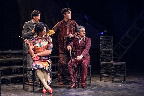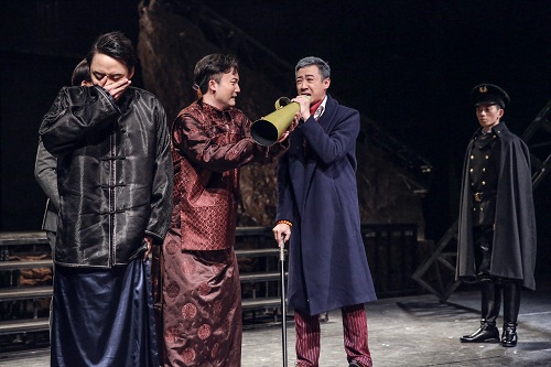 在荒誕悲喜劇《造王府》中,五位掌握金錢和話語權的達官貴人爾虞我詐,明爭暗斗。而作為全劇發(fā)展的一條副線,楊婉兒和張署長及馬副官的三角戀情也讓觀眾又恨又憐,都說戲子無情,可這無情之人卻因“有情”成為貪官手里的替罪羊。因孽緣因執(zhí)迷因一念之間,貪愛恨貪名利貪徒有虛表,是非可以顛倒,善惡難以分辨。最終,觀眾苦苦等待的真像也未能到來?!对焱醺纷屇阕呷牖奶评锏寞偪駚y世,又見證亂世中的愛恨孽長。