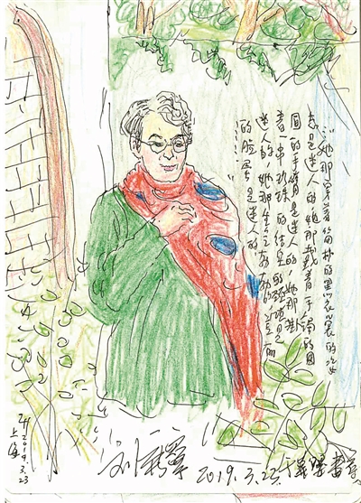 散場后,我請劉老師在我的畫本上簽名,夸她裹住消瘦雙肩的披巾好看,大塊的紅和深藍(lán)的圖案搭配,設(shè)計(jì)得非常藝術(shù),頗具修養(yǎng)。這也是我對真正藝術(shù)家劉廣寧老師的贊美。一年零三個(gè)月過去,記憶中這是我和她交談的最后一句話。