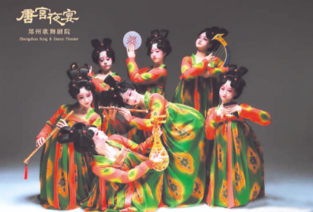 《唐宮夜宴》“復(fù)活”唐俑,以舞蹈再現(xiàn)大唐風(fēng)華。這支5分鐘的舞蹈展示了唐朝少女從準(zhǔn)備、整理妝容到夜宴演奏的全過程,14名參加夜宴的少女邊嬉笑打鬧,邊梳妝打扮,舞臺上光影流轉(zhuǎn),如同在古畫中翩翩起舞;當(dāng)場景切換到正式的宮廷表演時,她們的舞姿又不失大氣恢宏,一顰一笑、舉手投足間盡顯盛唐時期的文化風(fēng)情。