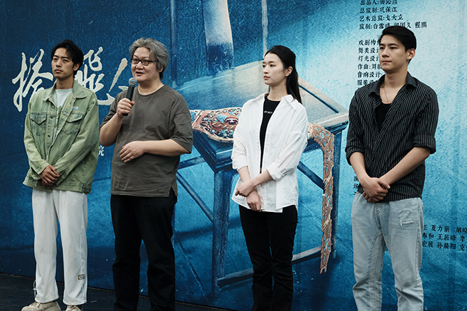 徐浩峰導(dǎo)演介紹青年演員翟冠華(右二)、肖琪峰(左一)、胡曉龍