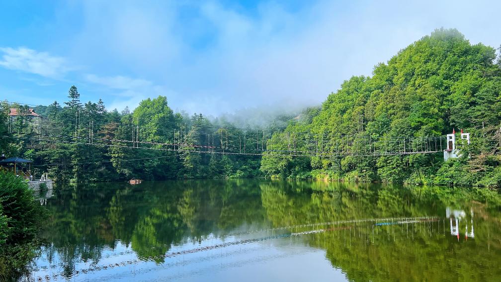 “像音符一樣蘇醒,整片天空做背景。背起行囊的這個(gè)剪影,旅程孤獨(dú)而堅(jiān)定……”周六傍晚,落日余暉染紅了天空,一首《在路上》的歌曲在雞公山的萬(wàn)國(guó)廣場(chǎng)上響起。游客們走出山間、湖邊的民宿,歡聚一堂,吹風(fēng)聽歌,放松心情。從北京來(lái)此度假的韓先生說(shuō),八月的雞公山真是一個(gè)沉浸自然、吟唱詩(shī)意的美好去處。