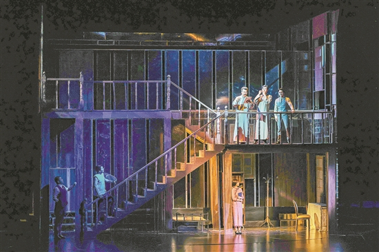 《春園·1923》采用了360度旋轉(zhuǎn)舞臺的設(shè)計(jì)。通過豐富的舞臺轉(zhuǎn)場,春園和曾為中共三大會址的兩層小樓凝練地佇立在同一空間,隨著舞臺旋轉(zhuǎn)、時空切換,人物在場景內(nèi)外自如穿梭,推進(jìn)著故事的發(fā)展。