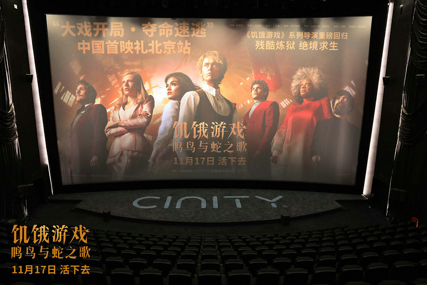 電影《饑餓游戲:鳴鳥與蛇之歌》于11月14日舉辦“大戲開局·奪命速逃”中國首映禮,分別在北京與南京兩地與影迷朋友們提前見面,現(xiàn)場不僅有“奇跡戰(zhàn)歌”循環(huán)播放,帶人一秒入戲;更有主演湯姆·布萊斯和導(dǎo)演弗朗西斯·勞倫斯二人的問候視頻播出,影片將于11月17日以4K/IMAX/CINITY/CGS中國巨幕/4DX/DTSX版本全球同步上映。
