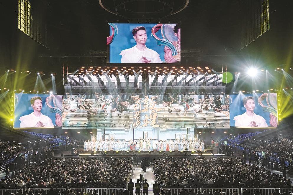 連續(xù)三晚,以數(shù)字多媒體營(yíng)造“敦煌空間”,用多元風(fēng)格的歌舞訴深情,這場(chǎng)百年追尋、千年回響將人們引入一個(gè)與我們所有人相關(guān)的敦煌。當(dāng)音樂話劇的形態(tài)與敦煌在數(shù)字時(shí)代的煥新達(dá)成內(nèi)在氣質(zhì)的高度契合,一次又一次,中華文脈在青春的律動(dòng)中擁抱觀眾。