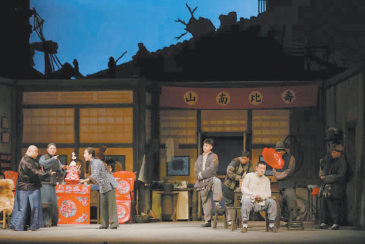 舞臺(tái)遠(yuǎn)處,老北京城門(mén)樓子的剪影橫亙天際;近處,木窗灰墻圍起一間極有年代感的平房;平房里,虎妞正在和父親劉四爺爭(zhēng)吵——這段經(jīng)典劇情出自家喻戶曉的《駱駝祥子》。