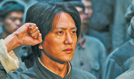 相比于以往表現(xiàn)毛澤東同志革命故事的作品,此次《浴血榮光》在如何表現(xiàn)建軍過程的影像上下了很大功夫。導(dǎo)演陳力做了精心設(shè)計,她讓影像不僅還原歷史,還富有更為深刻的寓意。比如,毛澤東在湖南發(fā)動秋收起義前,前往萍鄉(xiāng)安源煤礦的兵工廠,和工農(nóng)兄弟一起鍛造鐮刀與斧頭等武器,他在畫面的黃金分割點慷慨演說,鋼鐵熔爐里火紅的光芒照射在他身上,充滿油畫般的力量感和造型感,也寓意著人民軍隊就誕生于工農(nóng)中。