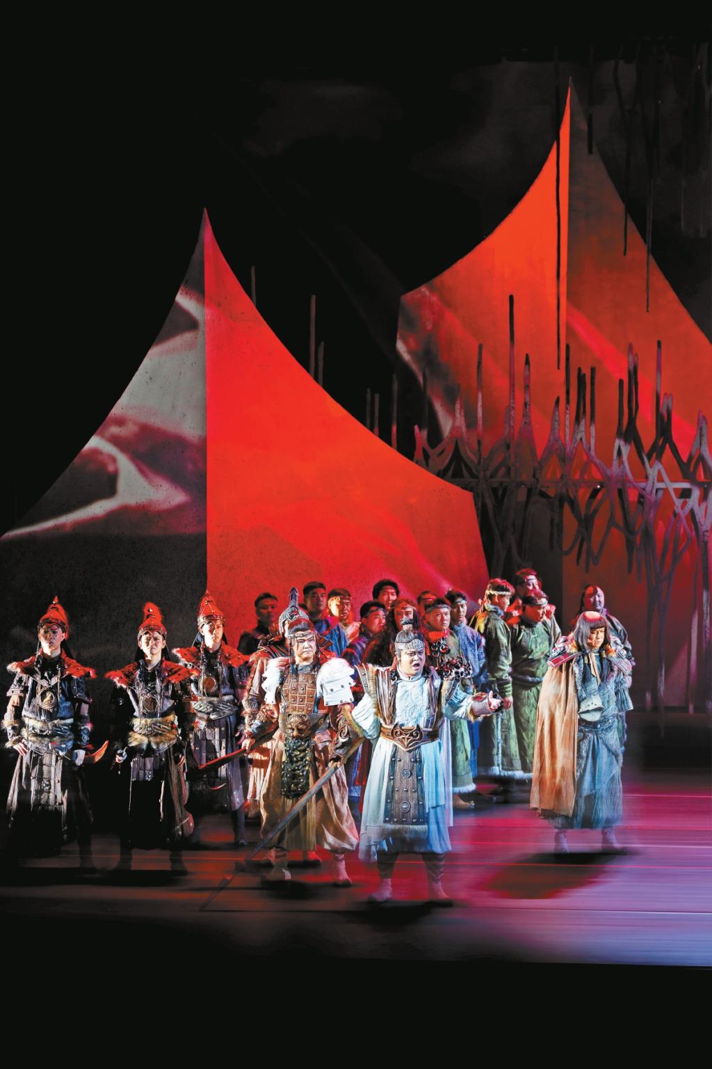 歌劇達(dá)到的高度往往和整個歌劇制作流程的規(guī)范是分不開的。一部歌劇要想把作曲家的樂譜轉(zhuǎn)化成完整的演出呈現(xiàn)在舞臺上,需要經(jīng)歷做音樂作業(yè)、坐排、合成等數(shù)個環(huán)節(jié)。作為舞臺領(lǐng)域的專家,陳蔚與地方合作的時候,都不遺余力地推廣科學(xué)的演出制作流程。在排演內(nèi)蒙古藝術(shù)劇院的首部歌劇《江格爾》時,陳蔚從給演員上戲劇表演、形體集訓(xùn)課開始,一點點地將科學(xué)的流程蘊(yùn)含在日常的工作中,對當(dāng)?shù)氐谋硌蓐犖楹湍缓髨F(tuán)隊進(jìn)行了系統(tǒng)培養(yǎng)。“要深入挖掘每個演出團(tuán)體的藝術(shù)特長,真正站在地方院團(tuán)的角度打造劇目,發(fā)揮其特長,彌補(bǔ)其不足?!标愇当硎荆ㄓ谐浞终{(diào)動各方力量,減輕地方負(fù)擔(dān),讓作品越演越有價值,才能真正留下精品。