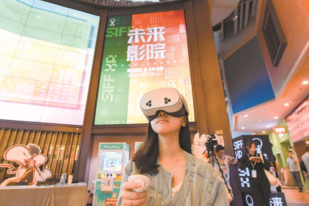 第二十七屆上海國(guó)際電影節(jié)未來(lái)影院?jiǎn)卧陂L(zhǎng)風(fēng)大悅城華誼兄弟電影中心正式啟動(dòng)。AR、VR、MR等技術(shù)讓觀眾品嘗未來(lái)影像的饕餮盛宴。文匯報(bào)記者 張伊辰攝