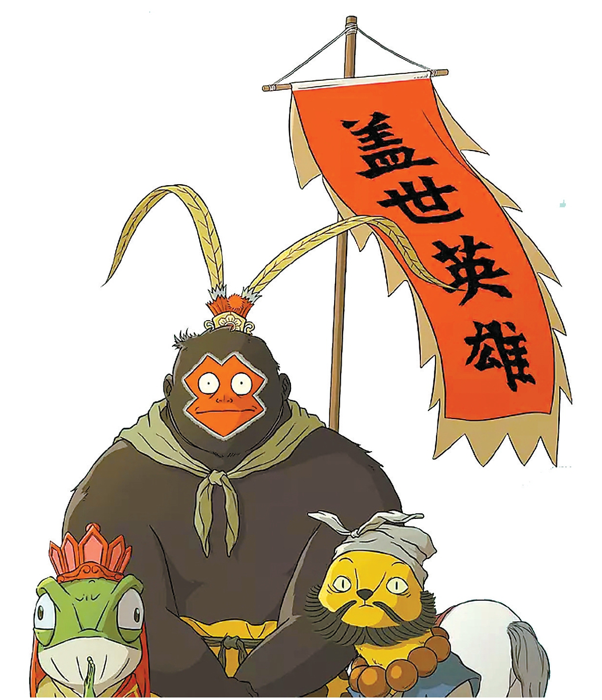《浪浪山小妖怪》講述了四個(gè)妖界體制內(nèi)的底層小妖——小豬妖、蛤蟆精、黃鼠狼精和猩猩怪,假扮唐僧師徒去西天取經(jīng),一路既充滿荒誕也滿懷熱血的故事。崔威透露,電影特意選擇了動(dòng)畫(huà)中不常見(jiàn)的四種動(dòng)物組成主角團(tuán),這種身份使角色更能呼應(yīng)日常生活中的普通人?!靶⊙男蜗笠膊怀霰姡踔劣悬c(diǎn)丑得有趣,我們就是要營(yíng)造小人物干大事的反差感?!睘榱诉M(jìn)一步營(yíng)造這種反差感,四個(gè)小妖的性格設(shè)定也和原師徒四人截然對(duì)立。全能的齊天大圣變成了社恐的猩猩,意志堅(jiān)定的唐僧變成了見(jiàn)機(jī)行事的蛤蟆,存在感最弱的沙僧變成了話癆的黃鼠狼,懶散貪吃的八戒則成了充當(dāng)團(tuán)隊(duì)核心驅(qū)動(dòng)力的小豬?!拔覀兿M蛟焖膫€(gè)最不可能扮演唐僧師徒的人,如果觀眾為這種反差感到滑稽和不可思議,那這正是我們想要的喜劇效果?!?/p>