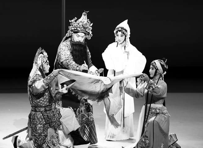 “劇本乃一劇之本,《顏真卿》的劇本基礎(chǔ)非常好,不僅有強(qiáng)烈的矛盾沖突,故事情節(jié)也非常抓人,劇情從一開始就進(jìn)入了緊張狀態(tài),之后的設(shè)計(jì)又環(huán)環(huán)相扣?!敝旖B玉特別提及,新戲創(chuàng)作有時會“把唱詞寫得別別扭扭”,《顏真卿》有難得的詩意,而且接地氣,格式、韻腳都很契合京劇音樂韻律,“《顏真卿》的聲腔強(qiáng)調(diào)一個‘韻味’,有韻味才能吸引人?!敝旖B玉同時注重結(jié)合作品的時間背景,融入管子音樂等標(biāo)志性的西北地域特色,在彰顯“京朝派”醇厚底蘊(yùn)的基礎(chǔ)上,為全劇注入一抹熾烈濃艷的唐時氣韻。