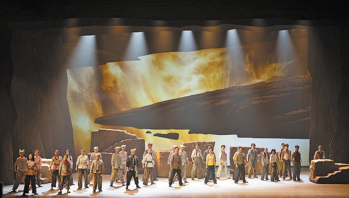 幾年前,中國東方演藝集團的藝術(shù)家們在導(dǎo)演、編劇周七月牽線下參觀陜北民歌博物館。博物館里有一張拍攝于1952年前后的老照片,是原中央歌舞團在陜北組建我國第一支民歌合唱隊——陜北民歌合唱隊時的合影?!爸醒敫栉鑸F是中國東方演藝集團的前身之一。雖然這支合唱隊后來因故解散,但看到這張照片,我們都感到非常驚喜?!敝袊鴸|方演藝集團著名歌唱家、《高歌》藝術(shù)總監(jiān)郭蓉回憶說。不久后,中國東方演藝集團恢復(fù)組建陜北民歌合唱隊,并與榆林展開合作,決定創(chuàng)作一部音樂劇,用年輕人喜愛的方式,讓陜北民歌與當(dāng)代音樂元素碰撞出新的火花。