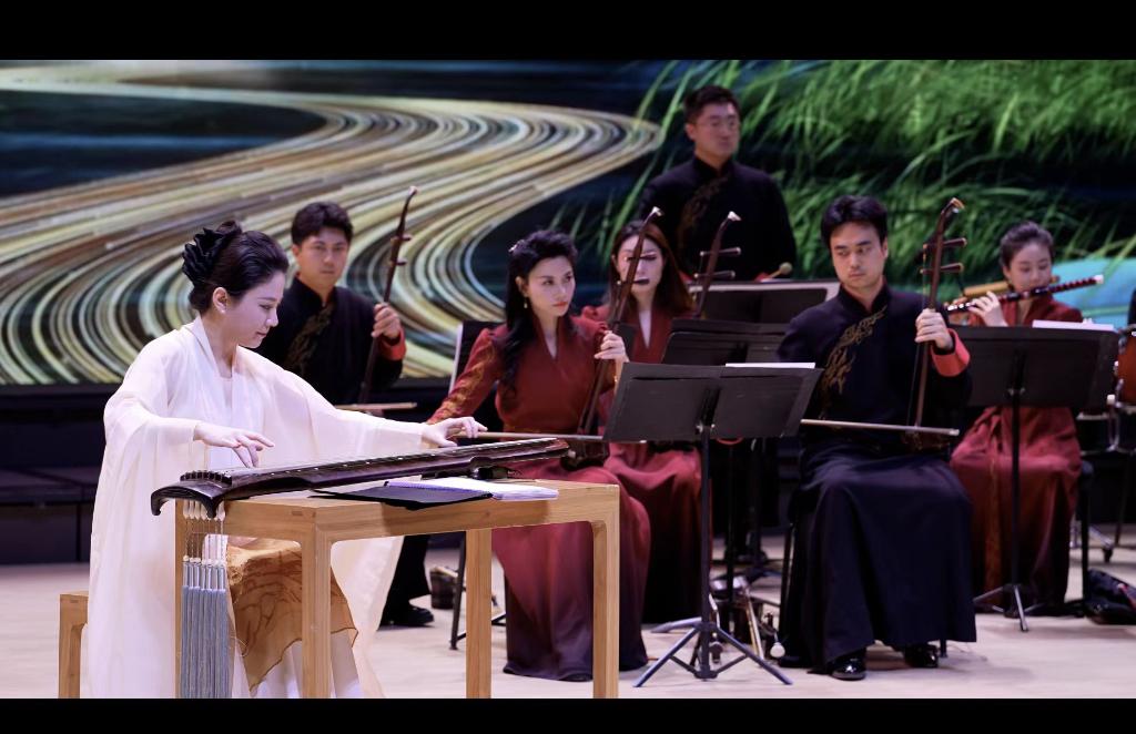 音樂會(huì)上,復(fù)刻春秋古制的古琴與珍稀老琴同臺(tái)亮相。古琴演奏家路寧攜手中央民族樂團(tuán)演奏家們,以《源》《神游》《清泠》《醉枕石》《云水吟》等8首全新編創(chuàng)作品為紐帶,讓古琴清微淡遠(yuǎn)的音色與大運(yùn)河“流動(dòng)史詩(shī)”的氣質(zhì)深度相融,完成跨越時(shí)空的對(duì)話。