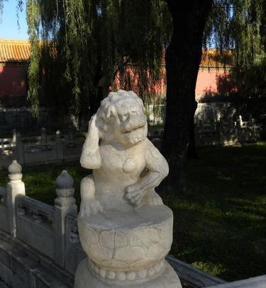 故宮有座斷虹橋,雖處在非開(kāi)放區(qū),但卻因橋上萌態(tài)十足的石獅子聲名遠(yuǎn)播。其中一只“護(hù)襠萌獅”其照片去年更為網(wǎng)友熱傳。只見(jiàn)它一爪摸著后腦勺,一爪護(hù)在襠部,嘴巴微張,雖然經(jīng)過(guò)日久風(fēng)吹,多少有些面目模糊,但抓耳撓腮、欲說(shuō)還休的“憋屈”樣依然萌態(tài)十足。