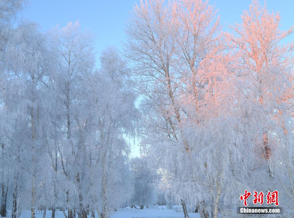 新疆阿勒泰罕見降雪后 現(xiàn)千里霜掛美景