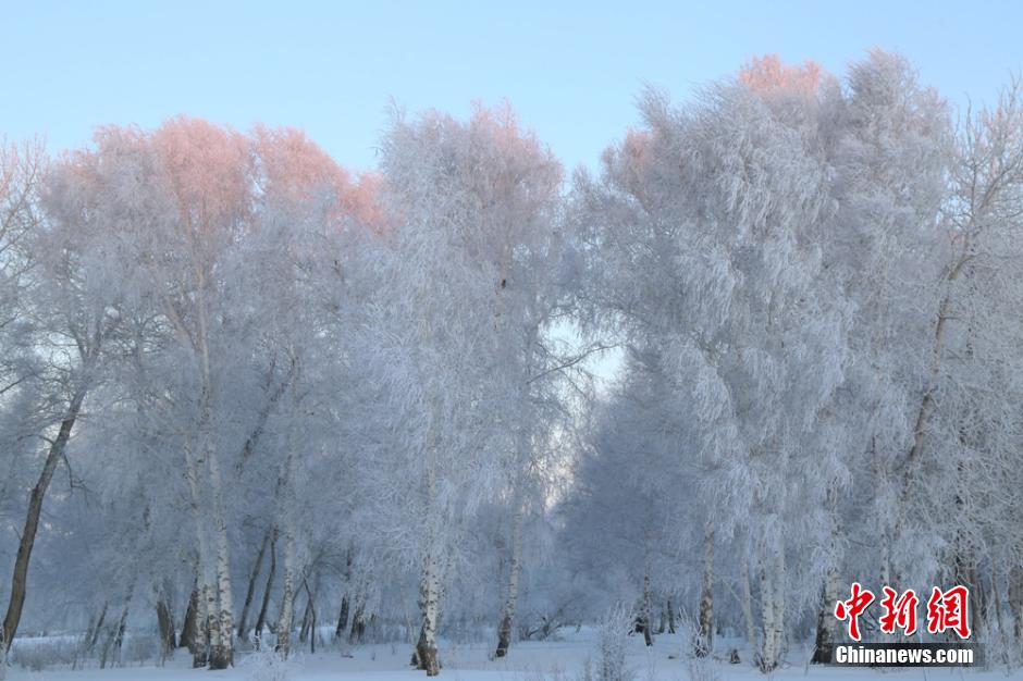 新疆阿勒泰罕見(jiàn)降雪后 現(xiàn)千里霜掛美景