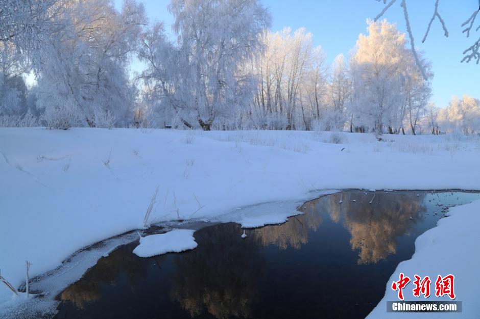 新疆阿勒泰罕見降雪后 現(xiàn)千里霜掛美景