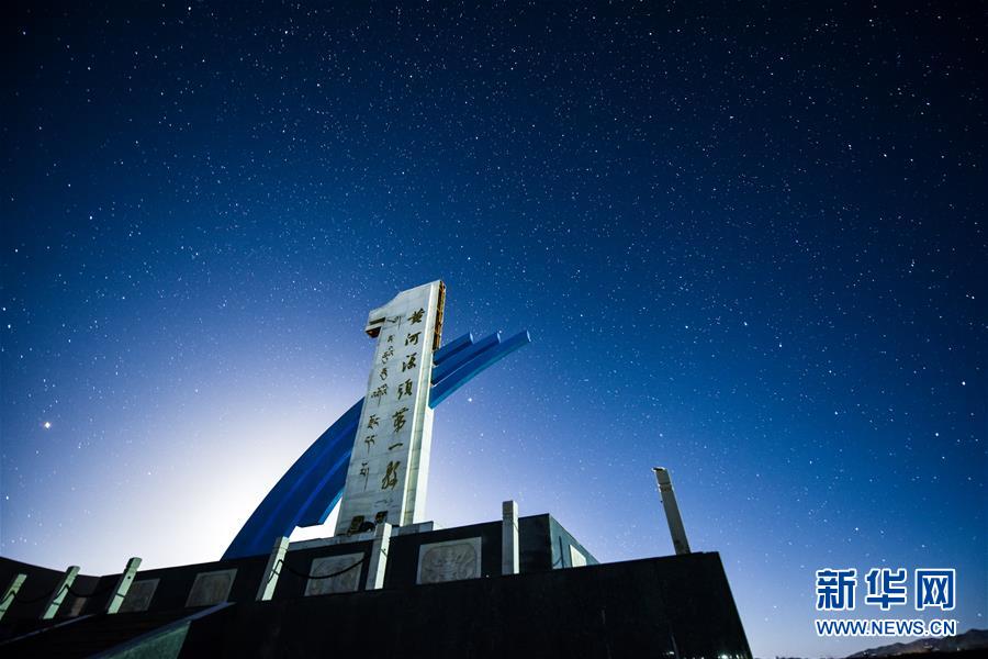 青海玉樹藏族自治州曲麻萊縣黃河源頭第一縣紀念碑(6月15日攝)。新華社記者吳剛攝