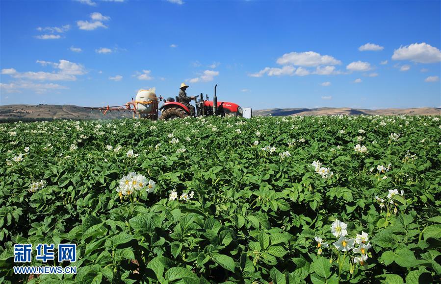 盛夏時節(jié),中國馬鈴薯之鄉(xiāng)甘肅定西的馬鈴薯進入開花期,眾多白色的花朵扮美田野。 新華社發(fā)(陳永剛 攝)