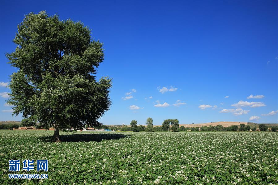 盛夏時(shí)節(jié),中國馬鈴薯之鄉(xiāng)甘肅定西的馬鈴薯進(jìn)入開花期,眾多白色的花朵扮美田野。 新華社發(fā)(陳永剛 攝)