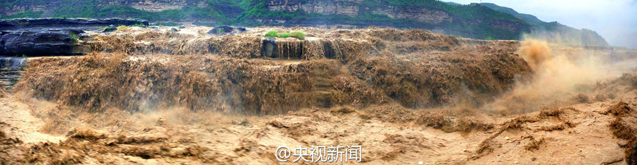 受上游強(qiáng)降雨和水庫(kù)放水影響,最近幾天,黃河壺口瀑布迎來(lái)伏汛,最大水流量達(dá)到每秒2600立方米左右,濁流滾滾奔騰而下,氣勢(shì)磅礴?。ㄑ胍曈浾呃钪?文豪)