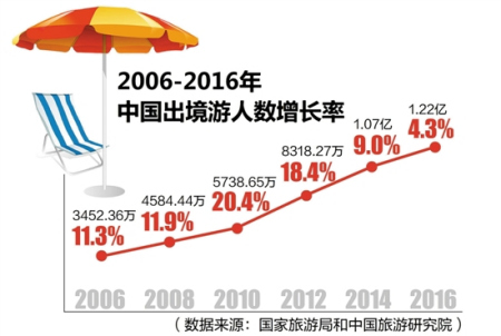 2017年春節(jié)假期,615萬國人到世界各地歡度新春佳節(jié),創(chuàng)出了出境游歷史新高,引來世界矚目。實際上,早在2011年,中國已成為世界第一大客源國,2014年出境游人次首次破億,2016年更是達到了1.22億人次。這一數(shù)字相當于我國人口數(shù)量前七位的重慶、上海、北京、成都、天津、廣州、保定的總和,也接近目前日本的總?cè)丝跀?shù)。