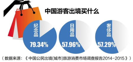 中國游客“買買買”名聲已傳遍全球。LV、Chanel、Hermes、PRADA、Rolex,這些奢侈品名牌服飾、手表店,隨處可見國人身影。而近年來,高端日用品也異軍突起,馬桶蓋、牙膏、電飯煲,甚至鍋碗瓢盆,這些國外超市貨柜上的商品同樣吸引著中國游客。根據(jù)《中國公民出境(城市)旅游消費市場調(diào)查報告2014-2015》,近八成的中國游客在境外旅行時會買紀念品,一半的游客會購買日用品,與購買奢侈品的游客比例持平。