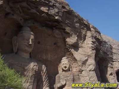 云岡石窟位于山西省大同市以西16公里處的武周山南麓。石窟始鑿于北魏興安二年(公元453年),大部分完成于北魏遷都洛陽(yáng)之前(公元494年),造像工程則一直延續(xù)到正光年間(公元520~525年)。石窟依山而鑿,東西綿亙約1公里,氣勢(shì)恢弘,內(nèi)容豐富?,F(xiàn)存主要洞窟45個(gè),大小窟龕252個(gè),石雕造像51000余軀,最大者達(dá)17米,最小者僅幾厘米??咧衅兴_、力士、飛天形象生動(dòng)活潑,塔柱上的雕刻精致細(xì)膩,上承秦漢(公元前221年~公元220年)現(xiàn)實(shí)主義藝術(shù)的精華,下開(kāi)隋唐(公元581~907年)浪漫主義色彩之先河,是世界聞名的石雕藝術(shù)寶庫(kù)之一。1961年國(guó)務(wù)院公布為全國(guó)重點(diǎn)文物保護(hù)單位,2001年被列為世界文化遺產(chǎn)。