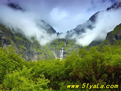 龍眼,位于四川省四姑娘山深處。據(jù)當(dāng)?shù)厝私榻B,只有采藥的人到過這個(gè)地方,當(dāng)?shù)仡愃埔粋€(gè)盆地,四周都是4、5千米海拔的雪山環(huán)繞,山頂終年積雪,山腰處數(shù)十條瀑布飛流而下,小的幾十米高、大的上百米,其中一處自山腰一洞中噴射而下,落入下面石臺(tái)分成幾股,再下再分,頗為壯觀,其壯如龍吐水,故名"龍眼"。