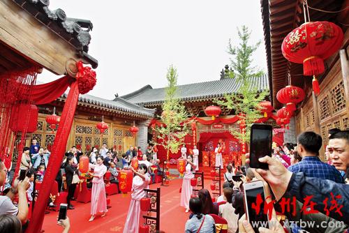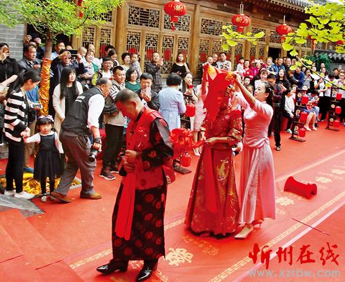 5月1日,不僅是國際勞動節(jié),很多新人也會選擇在這一天舉行婚禮。忻州市民潘先生和智女士就是其中的一對。這一天,他們在傳統(tǒng)中式婚禮儀式中邁入婚姻殿堂。古色古香的四合院,一排排大紅燈籠串著喜慶,一把把七彩陽傘溢著吉祥;紅彤彤的地毯鋪滿幸福,熱騰騰的油糕粘著美滿。一段紅絲綢,牽著新人的手,牽著一生一世的愛情,跨火盆馬鞍,拜過天地高堂,夫妻對拜,揭開紅蓋頭,點上紅喜燭,再喝一杯交杯酒……講究、喜慶的傳統(tǒng)中式婚禮環(huán)節(jié)讓兩位新人和到場賓客感受到了中國傳統(tǒng)文化的魅力。 傳統(tǒng)婚禮是中國文化精粹之一,婚禮習(xí)俗也源于中國幾千年的歷史文化積累,孝敬、祝福、吉祥更是成為中式婚禮上的主題,幾乎婚禮的每一項禮儀都滲透著中國人婚禮習(xí)俗的哲學(xué)思想。后來隨著時代發(fā)展,中式婚禮漸漸退出了人們的視線。很長一段時間無論在鄉(xiāng)村,還是城市,大家推崇的都是西式婚禮,新娘乘坐的工具也由原來的花轎換成汽車,婚車也從最初的普通小轎車到現(xiàn)在超長的凱迪拉克或賓利等高檔車。每當(dāng)節(jié)假日,我們時常會見到十幾輛結(jié)婚用的小轎車,浩浩蕩蕩,魚貫而行地駛過,場景甚至比上世紀(jì)60年代的國賓車隊還威風(fēng)、氣派。現(xiàn)如今,越來越多的新人選擇中式婚禮,是傳統(tǒng)婚禮文化的一種回歸。