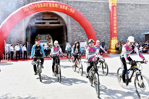 活動(dòng)中,旅行社代表發(fā)言,旅行社導(dǎo)游集體宣誓,旅行社負(fù)責(zé)人和導(dǎo)游集體簽署文明旅游承諾書(shū)。啟動(dòng)了捷安特騎行隊(duì)騎游??h文化藝術(shù)館舉辦了“激情廣場(chǎng)表演——懷舊專場(chǎng)”演出,節(jié)目有舞蹈、獨(dú)唱、晉劇選段、吉他彈奏、勁舞、歌伴舞、詩(shī)朗誦、水兵舞、旗袍秀等,贏得現(xiàn)場(chǎng)觀眾陣陣熱烈的掌聲,將“5·19中國(guó)旅游日”宣傳活動(dòng)推向了高潮。圖為捷安特騎行隊(duì)出發(fā)騎游(石俊文 攝影報(bào)道)