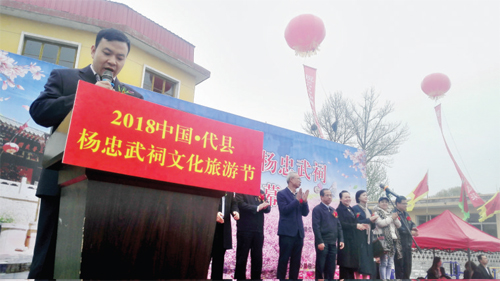 本報訊 為了弘揚楊家將忠勇愛國的名將精神,提升楊忠武祠的知名度和影響力,由中共代縣縣委宣傳部、代縣文化旅游發(fā)展委員會、代縣新聞辦公室、代縣廣播電視臺主辦,代縣棗林鎮(zhèn)人民政府協(xié)辦的楊忠武祠文化旅游節(jié)4月13日——24日在鹿蹄澗村隆重舉行,此次旅游節(jié)嘗試文化+旅游+體育的模式促進(jìn)代縣文化旅游發(fā)展,旨在弘揚傳統(tǒng)文化,助推鄉(xiāng)村振興,傳播健康綠色運動。