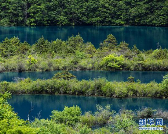 九寨溝風景名勝區(qū)內的“樹正群?!保?月18日攝)。新華社記者 沈伯韓 攝