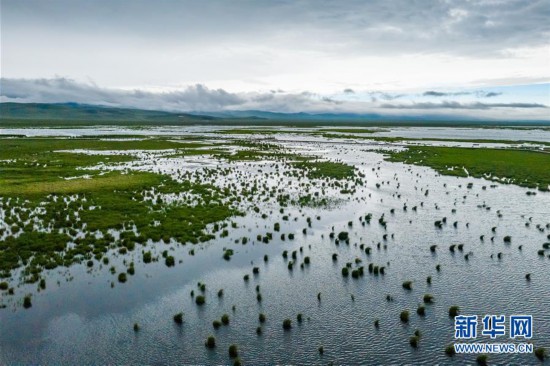 位于四川省阿壩藏族羌族自治州若爾蓋縣西北部的花湖生態(tài)旅游區(qū)(6月16日攝,無人機照片)。新華社記者 沈伯韓 攝
