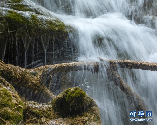 九寨溝風景名勝區(qū)內的“雙龍海瀑布”(6月18日攝)。新華社記者 沈伯韓 攝