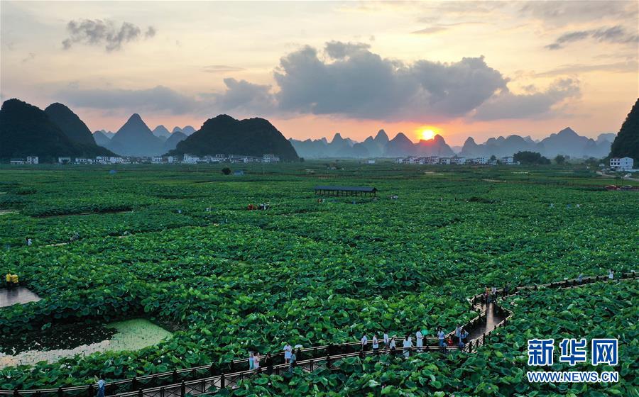 連日來,廣西柳州市柳江區(qū)百朋鎮(zhèn)萬畝荷塘種植的春季蓮藕喜獲豐收,各色荷花競相綻放,吸引游客前來賞玩。百朋鎮(zhèn)是柳州市柳江區(qū)雙季蓮藕的主產(chǎn)區(qū),雙季蓮藕種植面積達(dá)3.2萬畝。同時,當(dāng)?shù)胤e極發(fā)展荷花景區(qū)生態(tài)旅游休閑項(xiàng)目,260多戶貧困戶通過蓮藕種植及旅游產(chǎn)業(yè)實(shí)現(xiàn)脫貧。