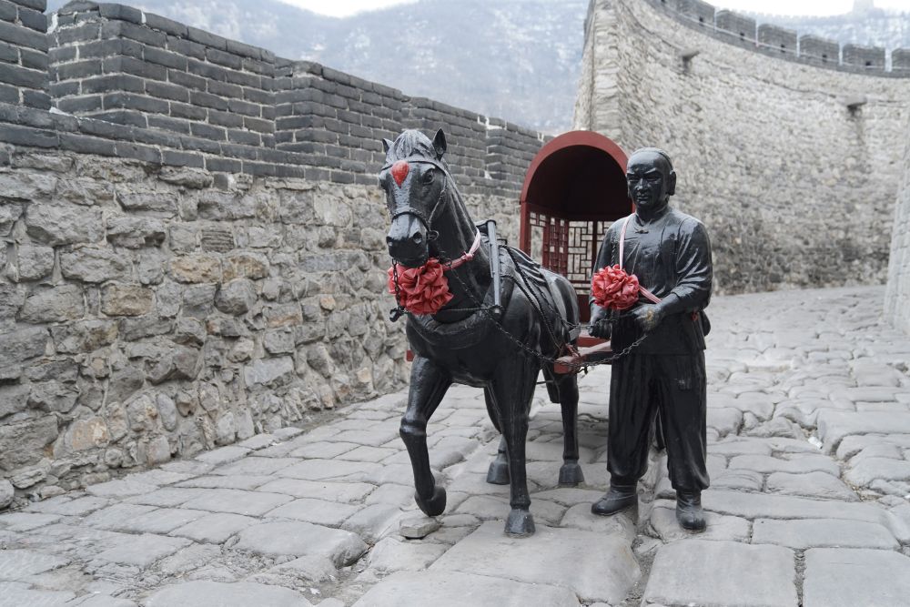 固關長城的甕城內(nèi),大約30厘米深的車轍印從城門洞下穿過,深深地鑲嵌在石板路里。游客們徜徉于井陘古道,不禁紛紛感嘆時光流逝。