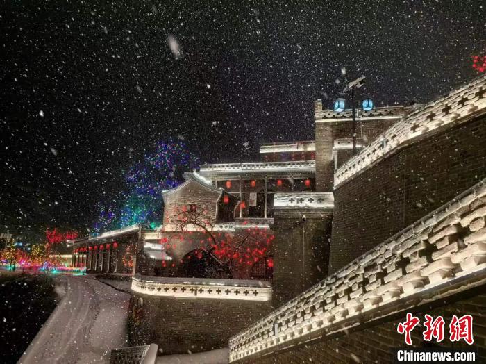 雪花飄落,將古村裝點(diǎn)得如夢似幻。
