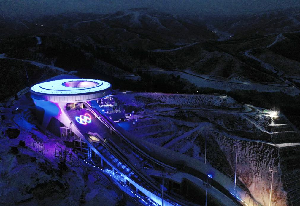 國(guó)家跳臺(tái)滑雪中心“雪如意”開(kāi)啟燈光秀