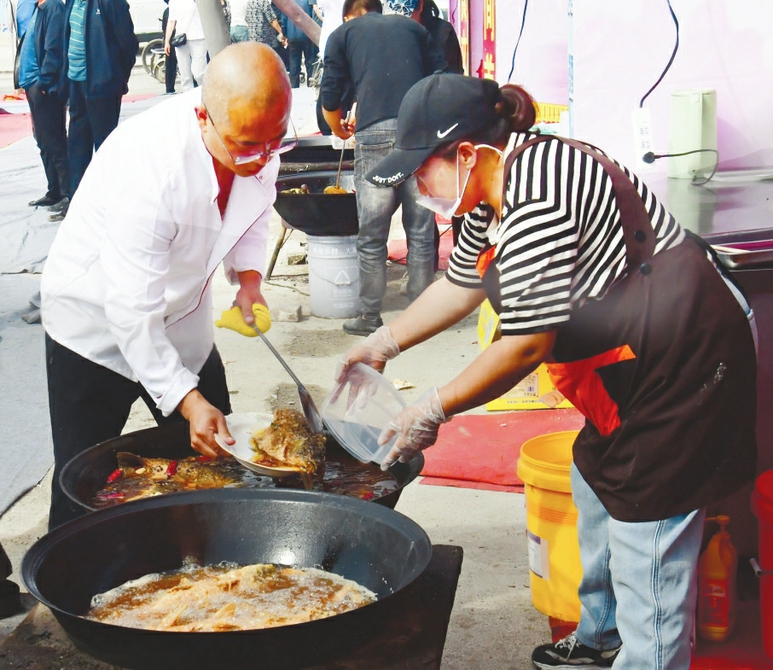首屆熬魚美食節(jié)匯聚了代縣碗托、老咸菜、豆腐干等當(dāng)?shù)亍凹亦l(xiāng)味”,12家熬魚商戶更是集體亮相,現(xiàn)場烹飪銷售。賈狗狗有著近40年的熬魚經(jīng)驗(yàn),今年備貨比往年更足、更早。